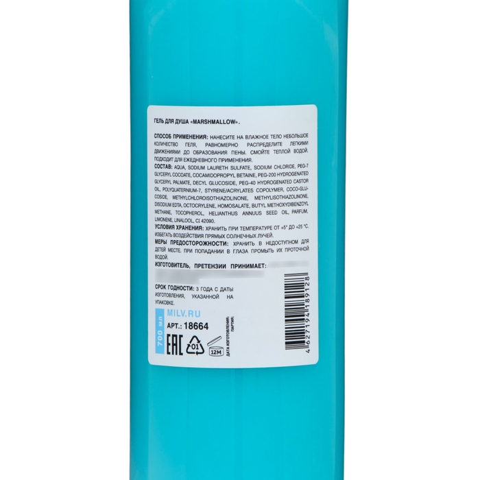 Гель для душа Milv "MARSHMALLOW", 700 мл