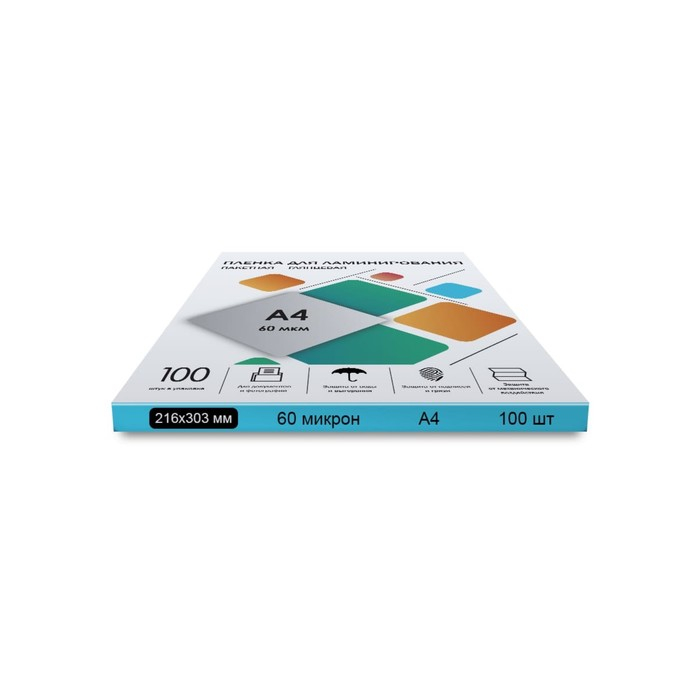 Пленка для ламинирования A4 216х303 мм, 100 мкм, 100 штук, глянцевые, Гелеос