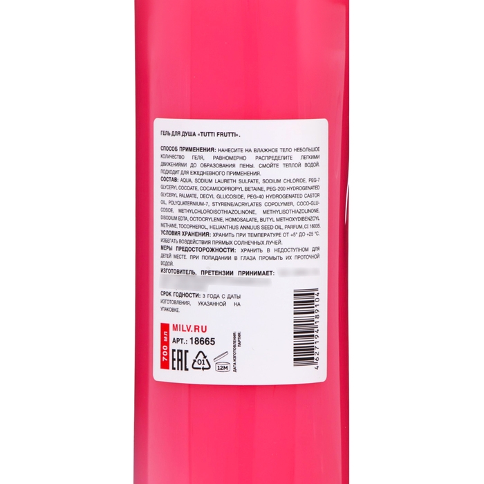 Гель для душа Milv "TUTTI FRUTTI", 700 мл