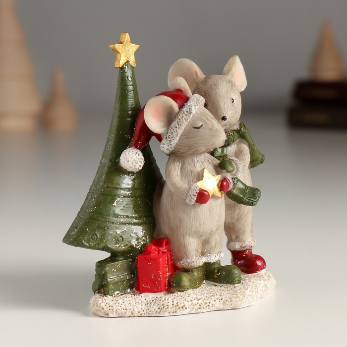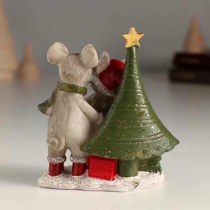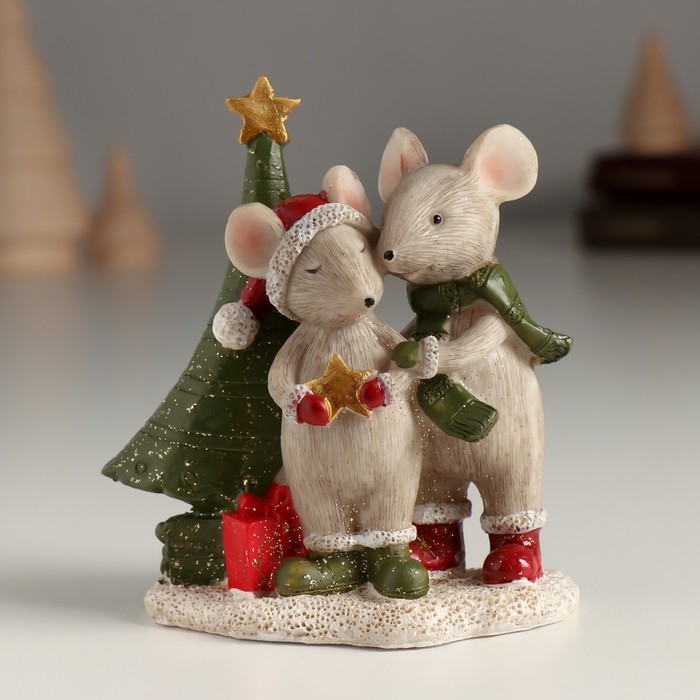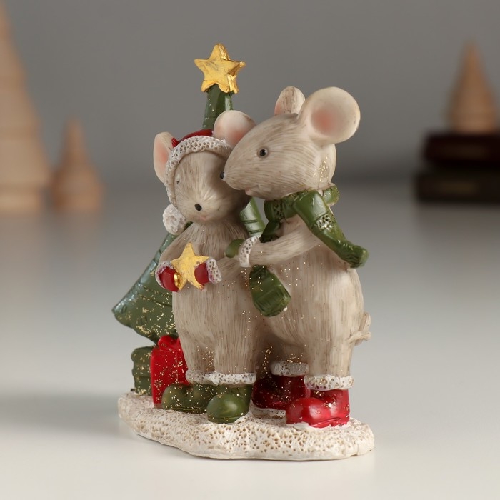 Сувенир полистоун "Пара мышек у новогодней ёлки" 8,5х5х10 см