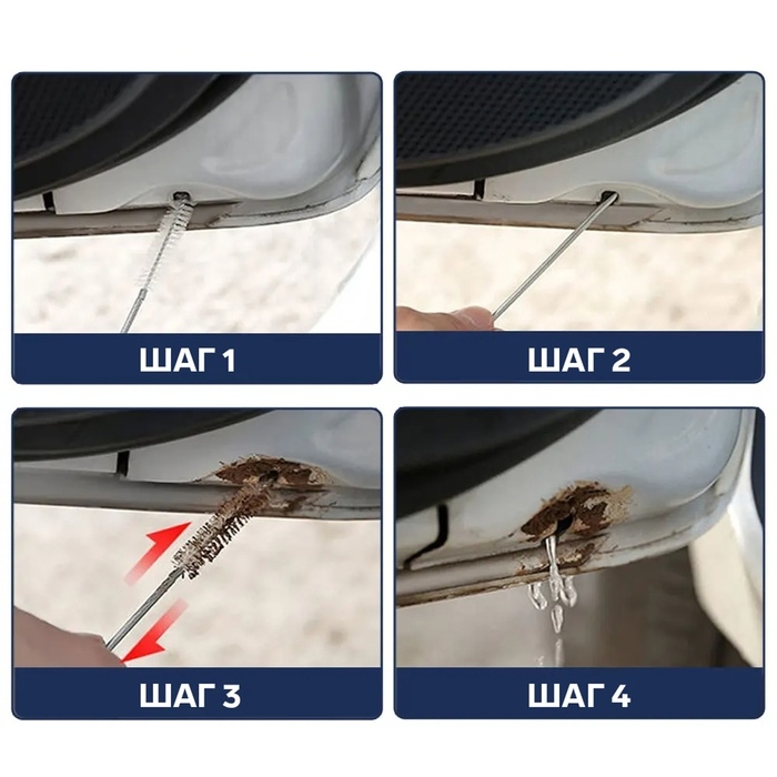 Благодаря своей гибкости и нейлоновой щетине, щётка легко проникает в труднодоступные места и эффективно удаляет загрязнения, такие как листья, ветки, грязь и мусор. Использование такой щётки поможет избежать засорения дренажной системы автомобиля, предотвратит образование плесени и грибка, а также обеспечит нормальную работу системы водоотвода. Это особенно важно в период дождей и таяния снега, когда риск засорения дренажных отверстий возрастает.