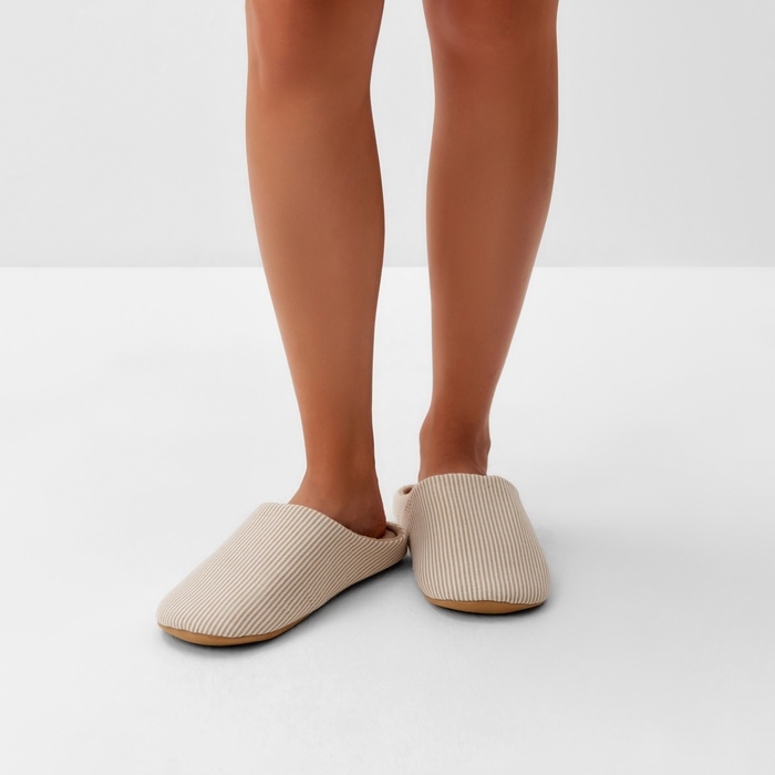 Тапочки женские, ECO размер 38-39, цвет бежевая полоска