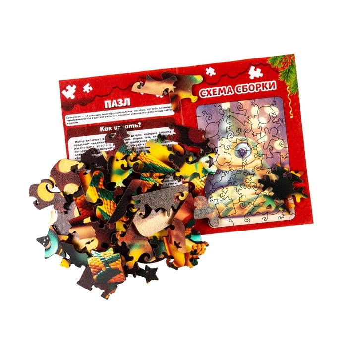 - Высокое качество материалов — детали пазла изготовлены из плотного картона, что обеспечивает долгий срок службы.