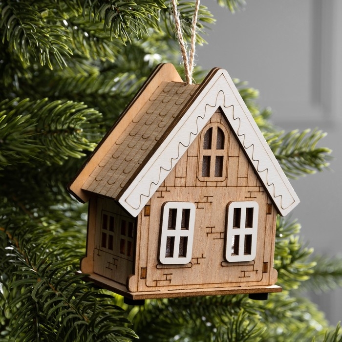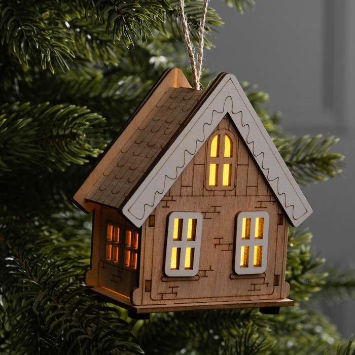 Подвеска световая "Бежевый домик", 10.5х5.5х11 см, 1 LED, AG10x3 (в компл.), свечение тёплое белое
