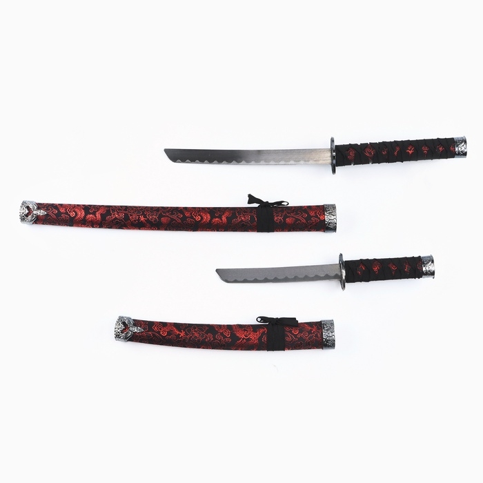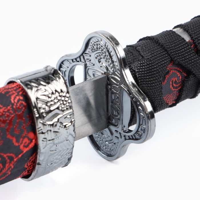 Сув. изделие катаны 2в1 на подставке, ножны кожзам,красный дракон на черном 47/70см