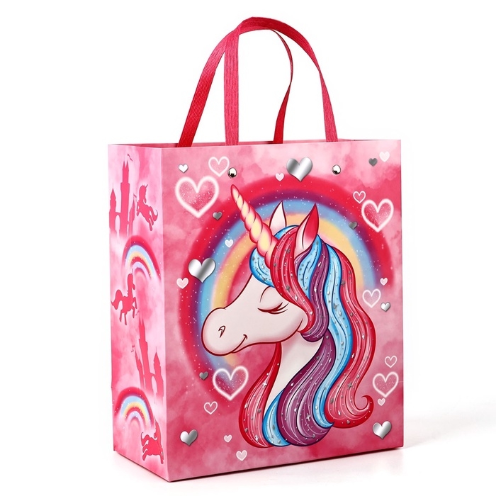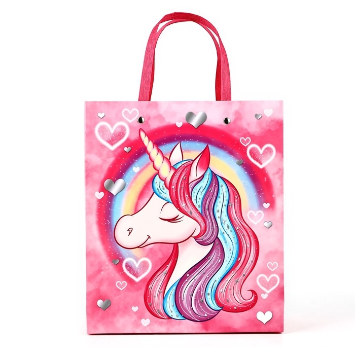 Пакет подарочный ламинированный с тиснением, Единорог, Минни Маус, 23х27х11,5 см