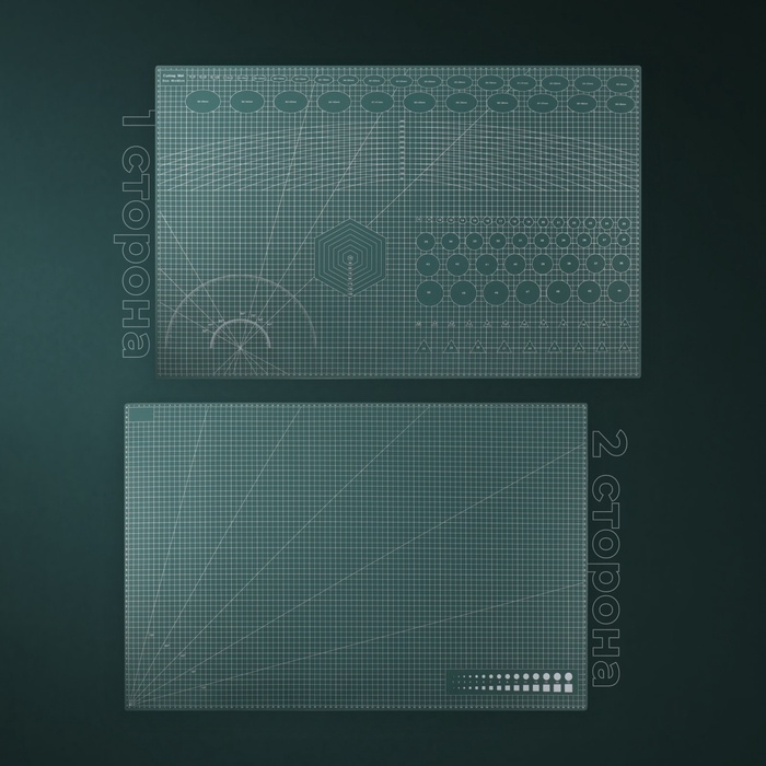 - Двухстороннее использование: с одной стороны на мате нанесены деления в сантиметрах, что удобно при работе с метрической системой измерений, а с другой стороны — деления в дюймах, что помогает при работе с имперской системой измерений.
