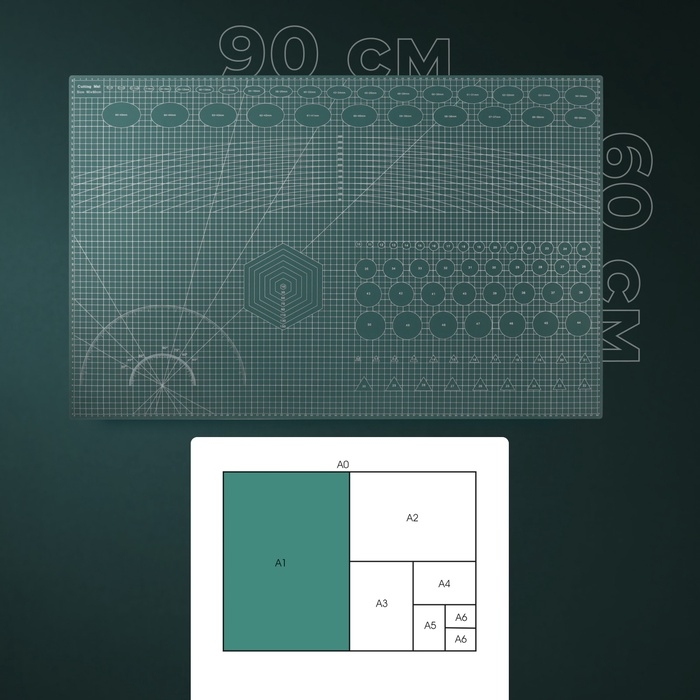 Мат для резки, трёхслойный, 90 × 60 см, А1, цвет зелёный