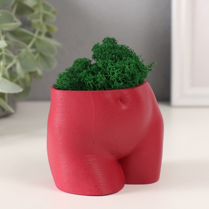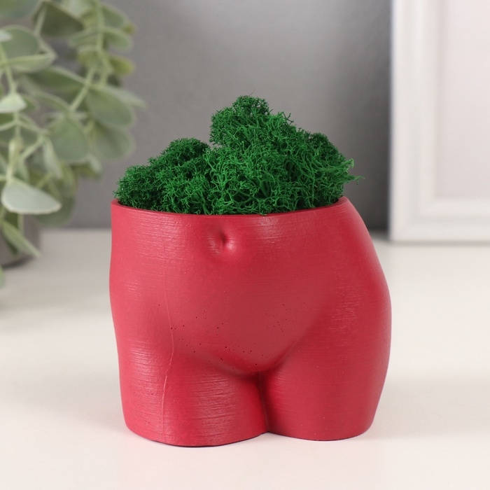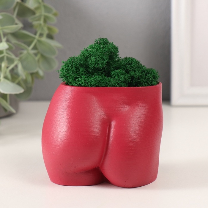 Кашпо бетонное "Невинный вид" высота 6,5см, ширина 8,5см винный со мхом (мох зелен. стабилиз 1041207