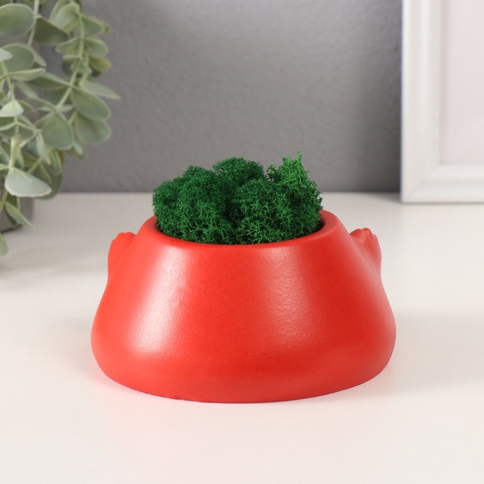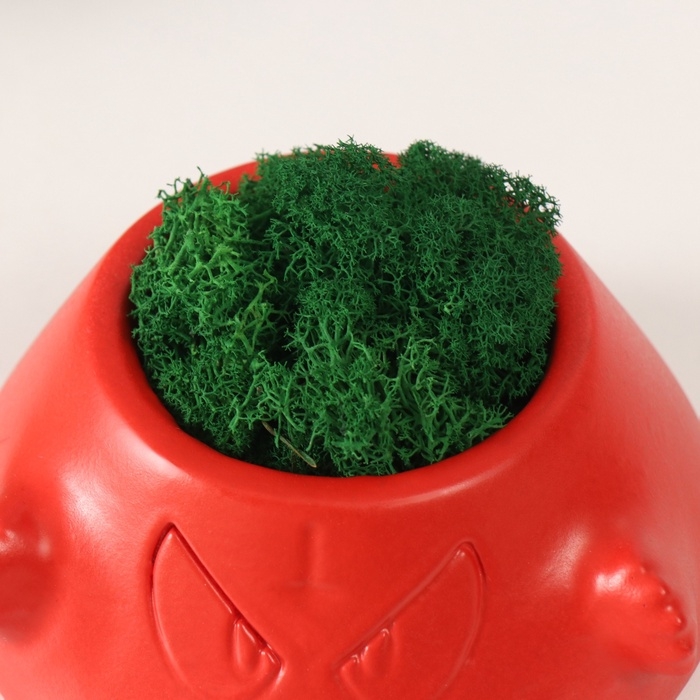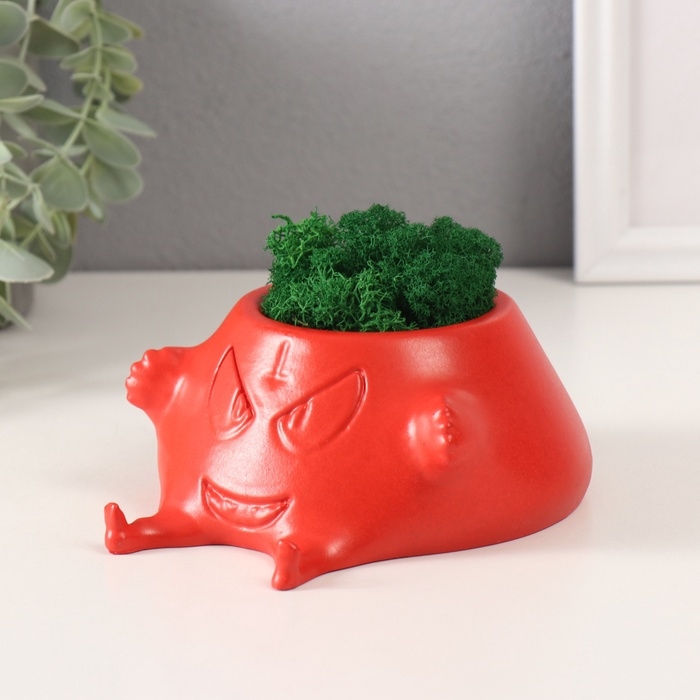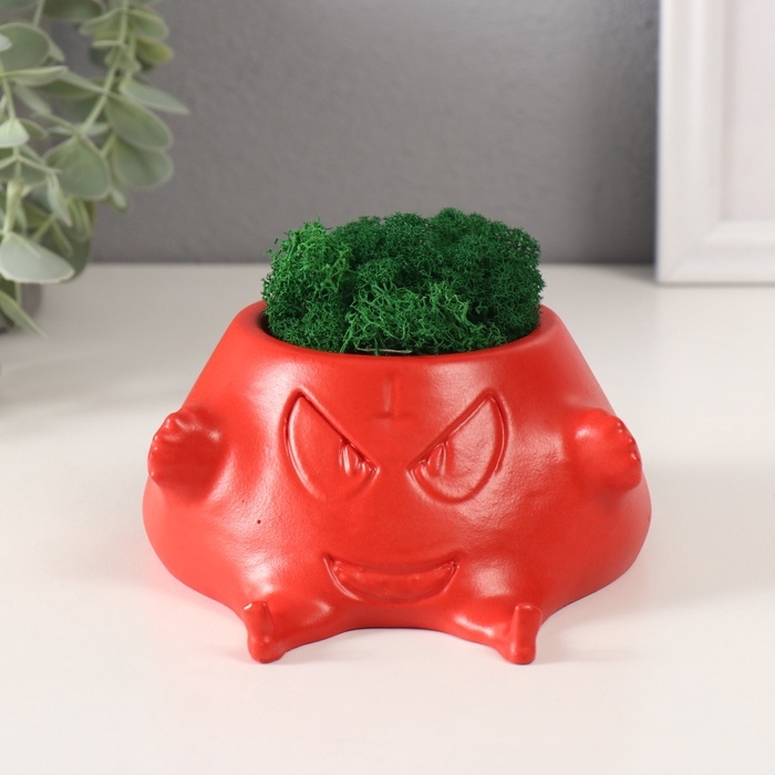 Кашпо бетонное "Злобный смех" со мхом 6,5*12,5см красный (мох зеленый стабилизированный)