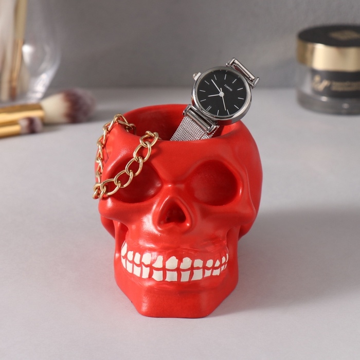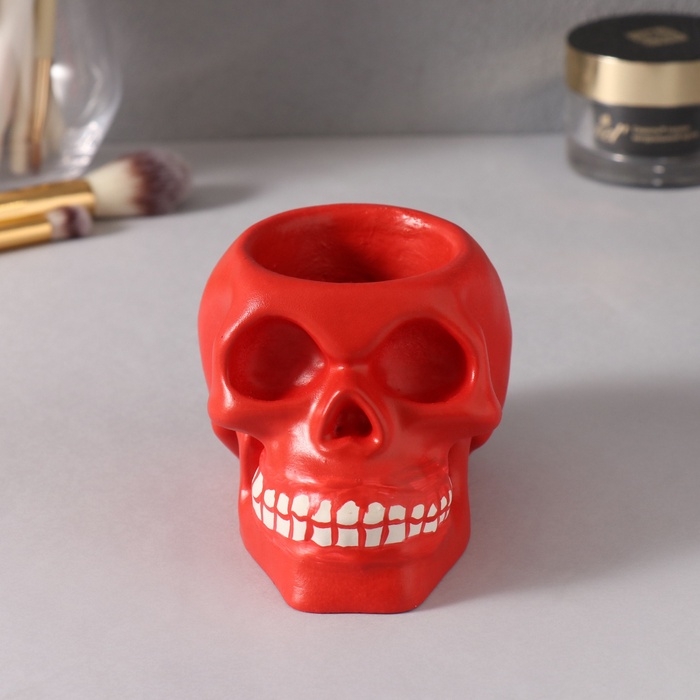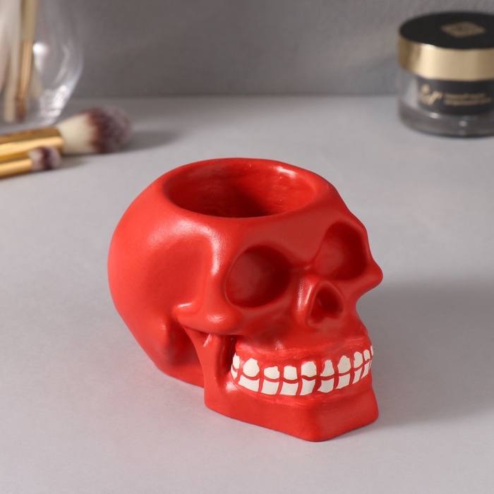 Предмет интерьера "Череп " 7*10см красный, белые зубы