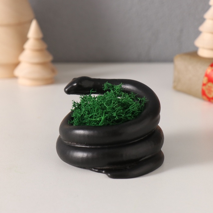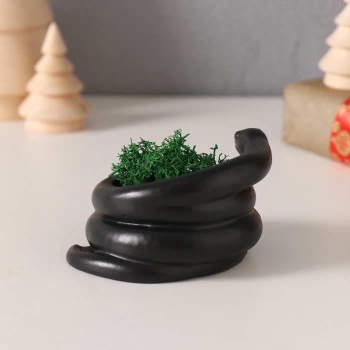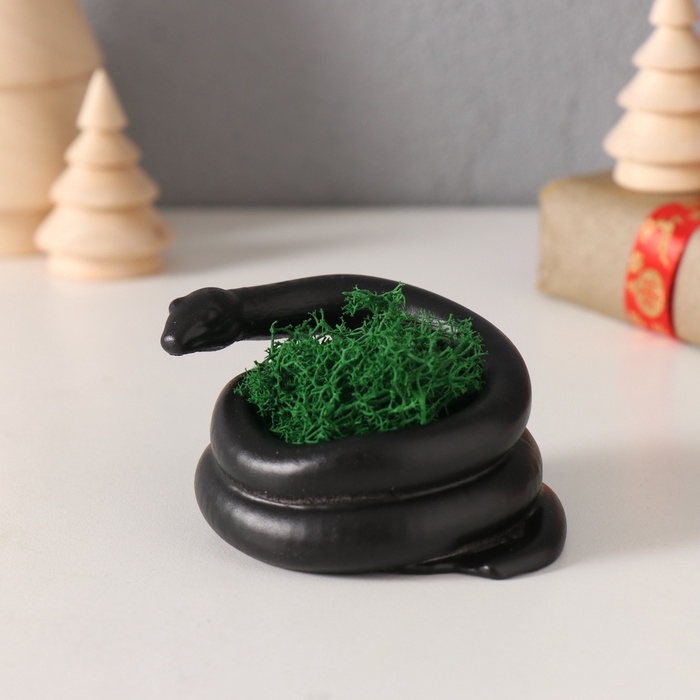Сувенир мини "Змея" крученая со мхом 4*7*4 см черная (мох зелен стабил)