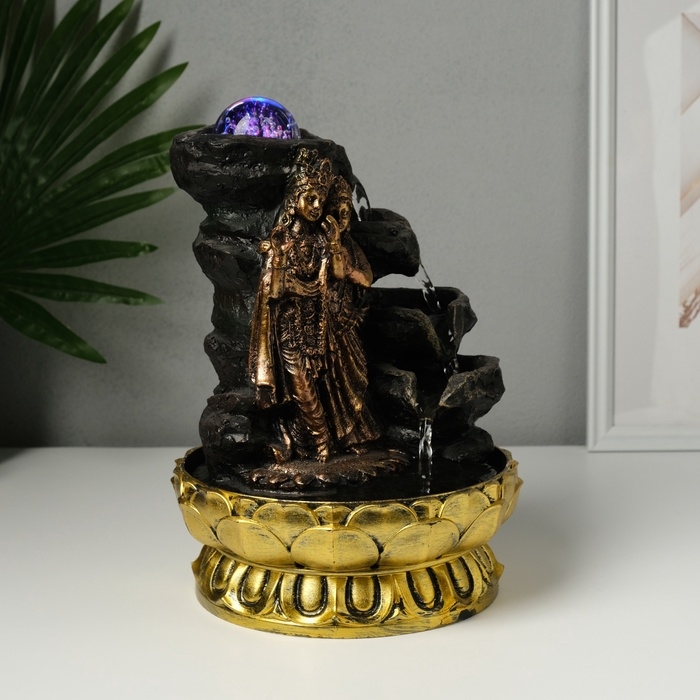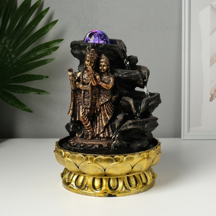 Фонтан настольный от сети, подсветка "Радха и Кришна у водопада" бронза 20,5х20,5х28 см