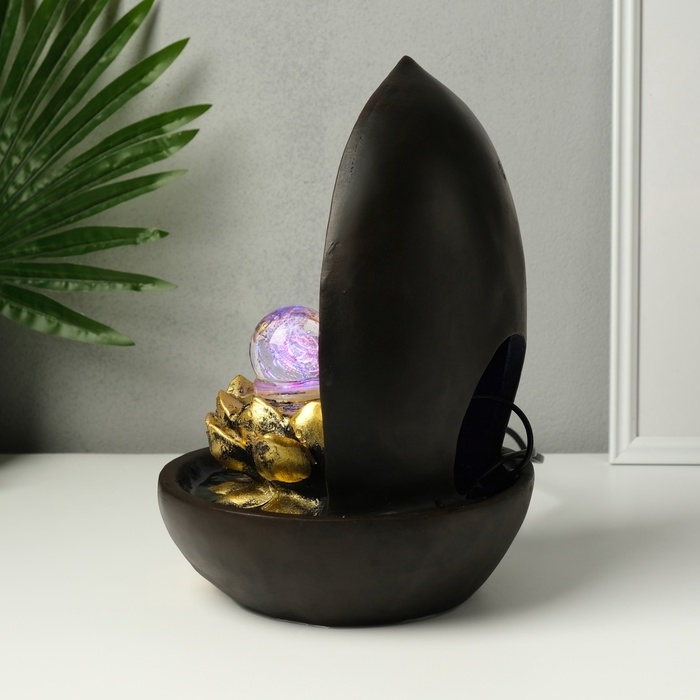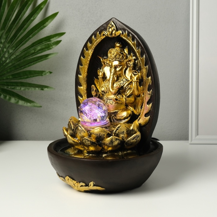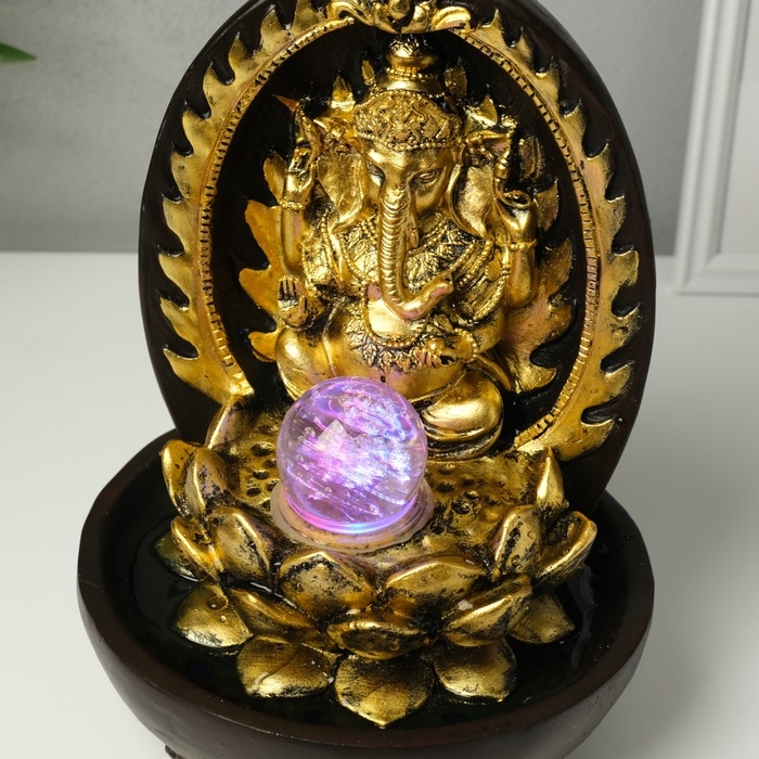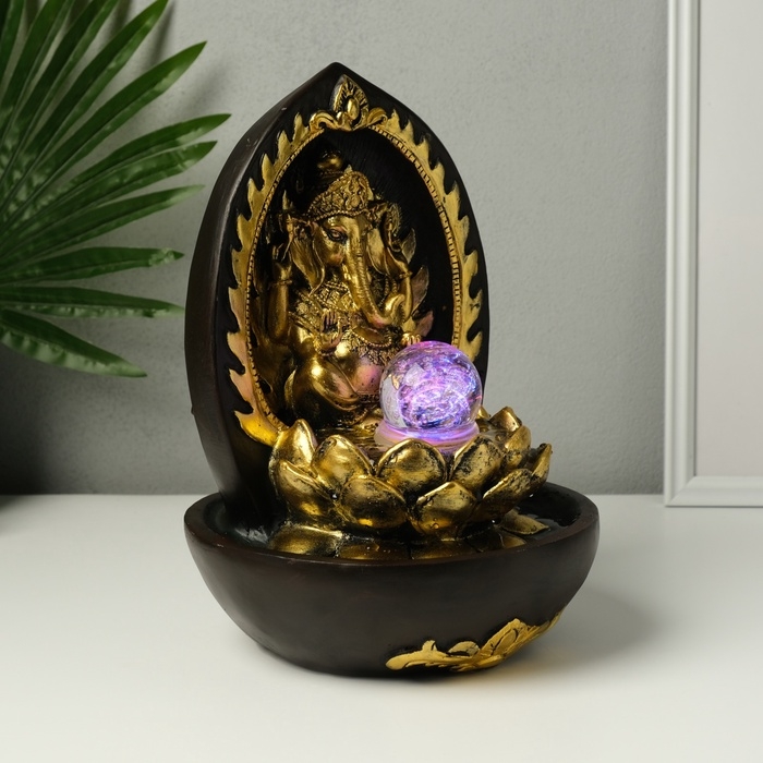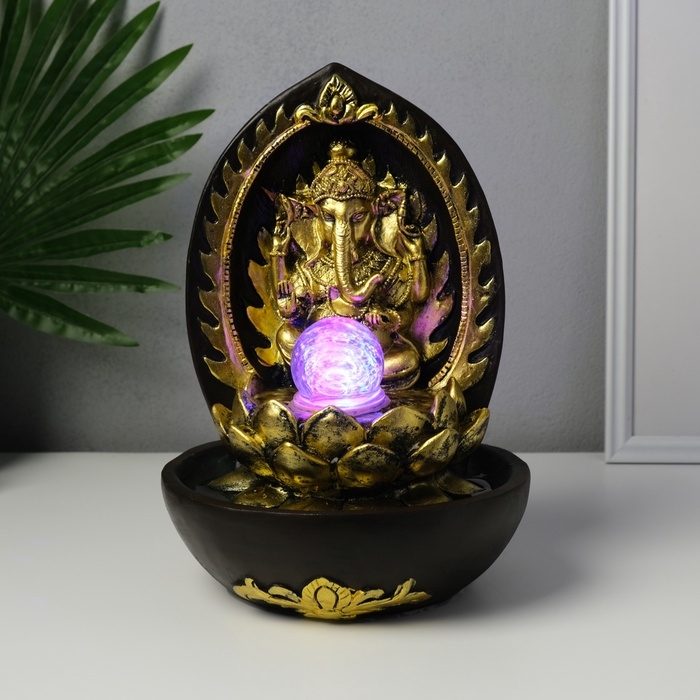 Фонтан настольный от сети, подсветка "Ганеша в арке у лотоса" 22х22х31 см