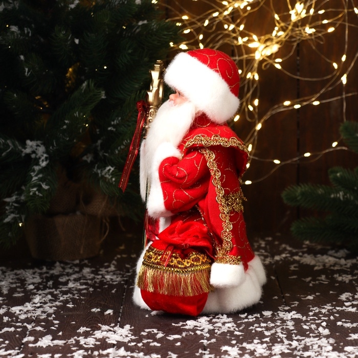Дед Мороз "В шубе и с мешком с нашивкой" двигается, 30х18 см, красный
