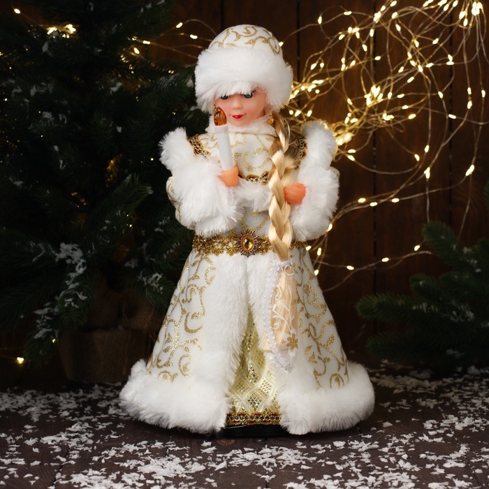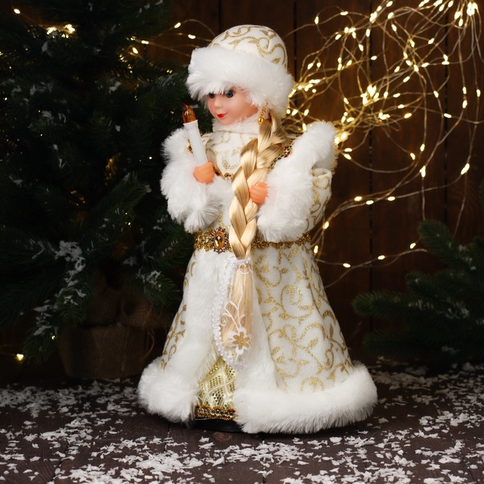 Снегурочка "В шубке с орнаментом" двигается, с подсветкой, 40х20 см, золото