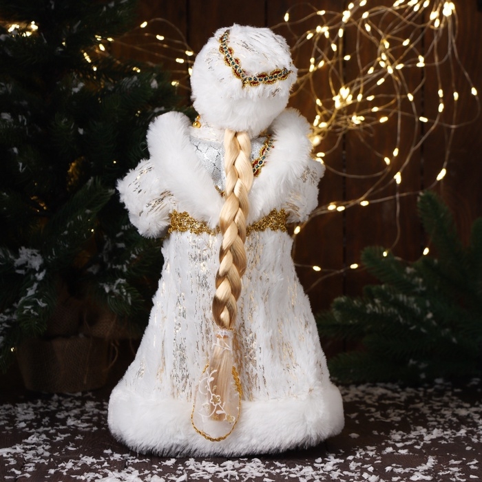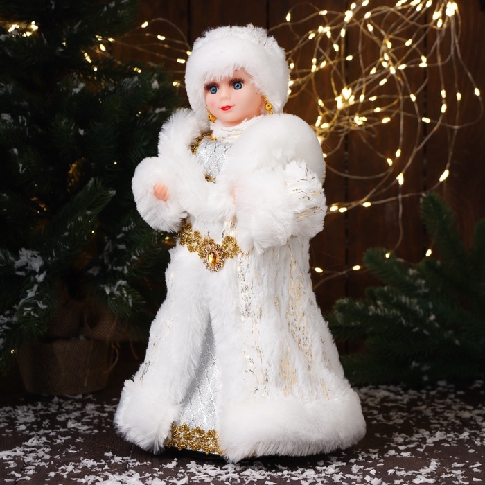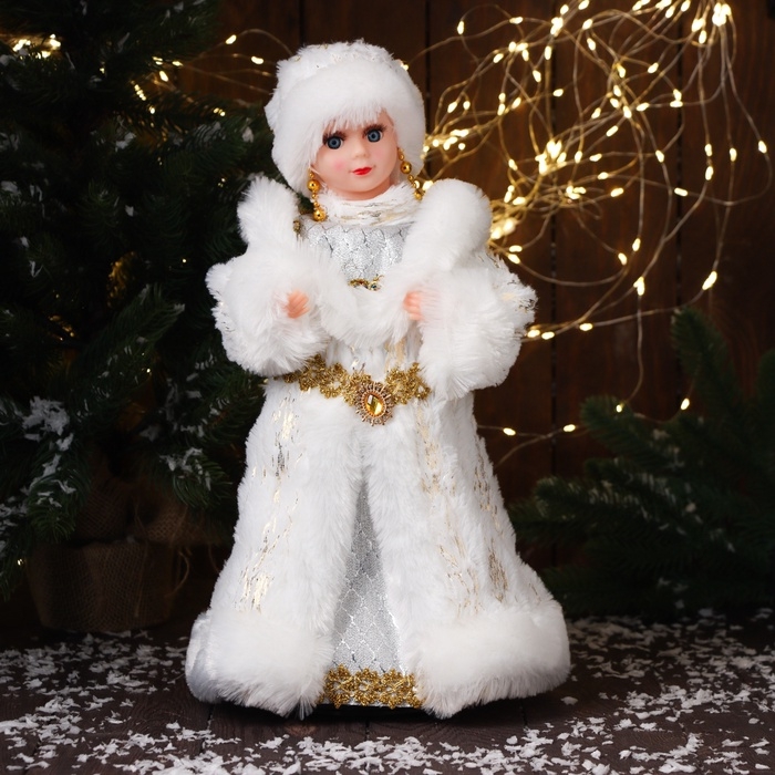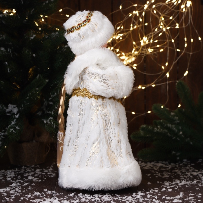 Снегурочка "В шубке и серьгах. с ремешком" двигается, 40х20 см, белый