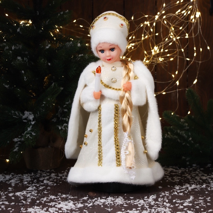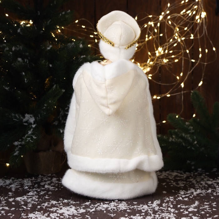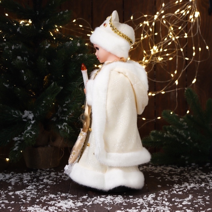 Снегурочка "В шубке с бусинками и в кокошнике" двигается, с подсветкой, 40х20 см, золото