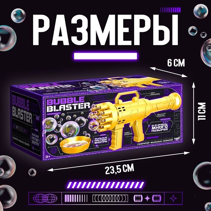 Генератор мыльных пузырей «Пулемёт», золотого цвета, 23,6 × 10,85 × 6 см