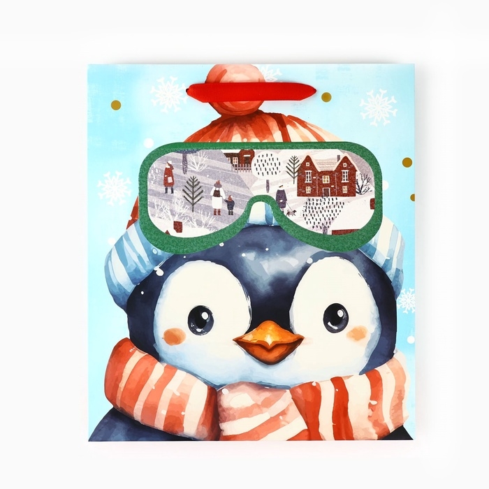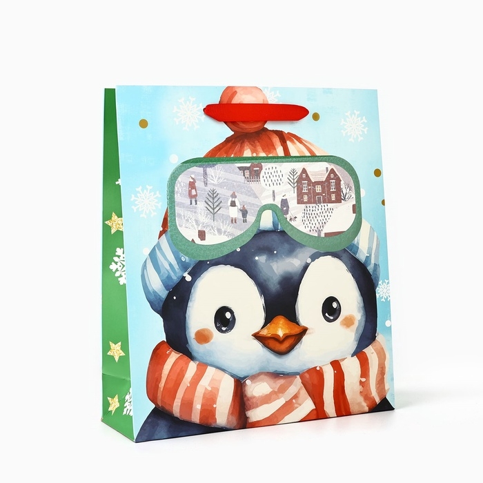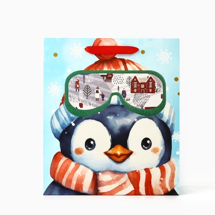 Пакет подарочный новогодний ламинированный «Пингвинёнок», конгрев, M 30 х 26 х 9 см, Новый год