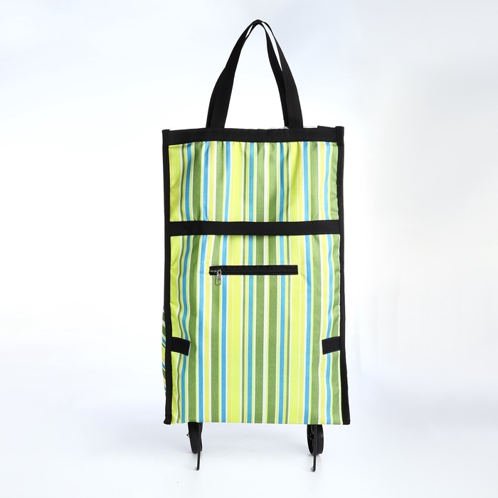 Сумка хозяйственная складная на липучке, 2 колеса, цвет зелёный