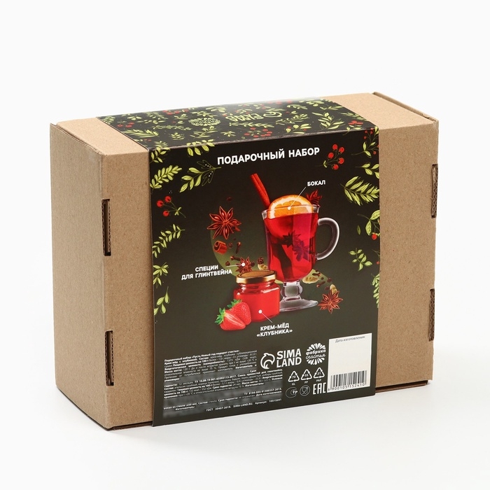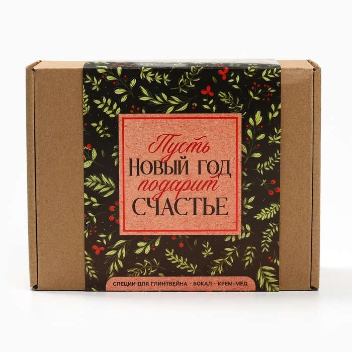 Подарочный набор: специи для глинтвейна, бокал, крем мед "Новый год подарит счастье"