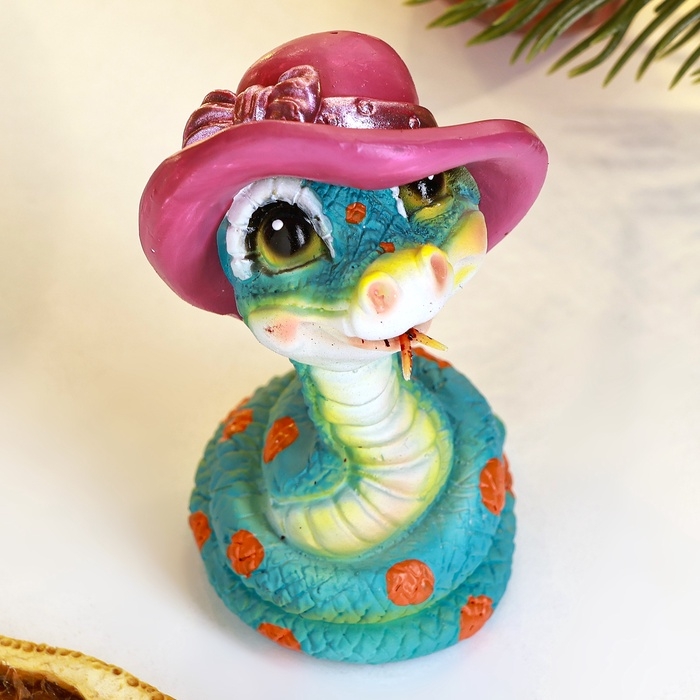 Новый год. Символ 2025. Фигура "Змейка в шляпке" 4х6х6см, цветная