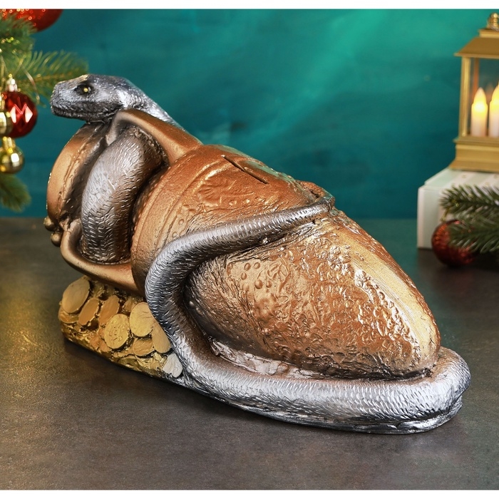 Новый год. Символ 2025. Копилка "Змея на кувшине" 32х19см