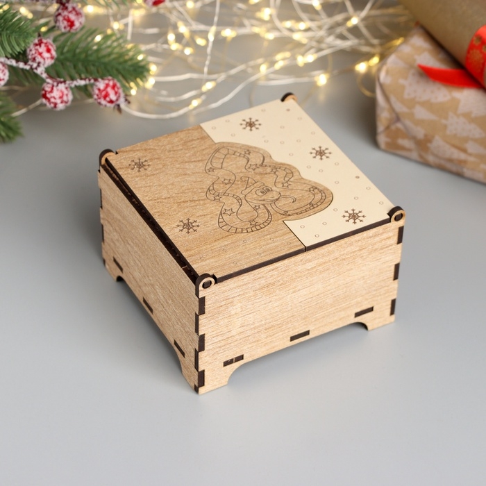 Новогодняя шкатулка комбинированная "Змейка-ёлка" 10,5х10х7 см