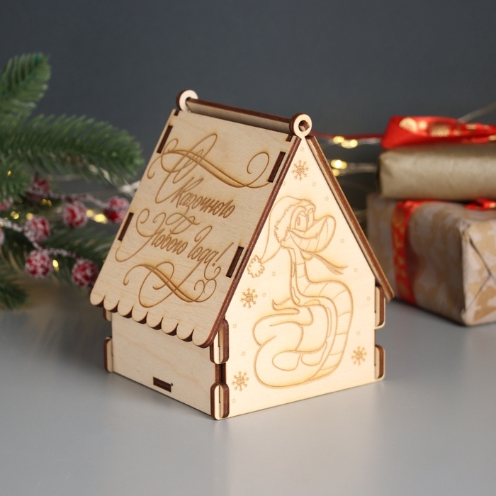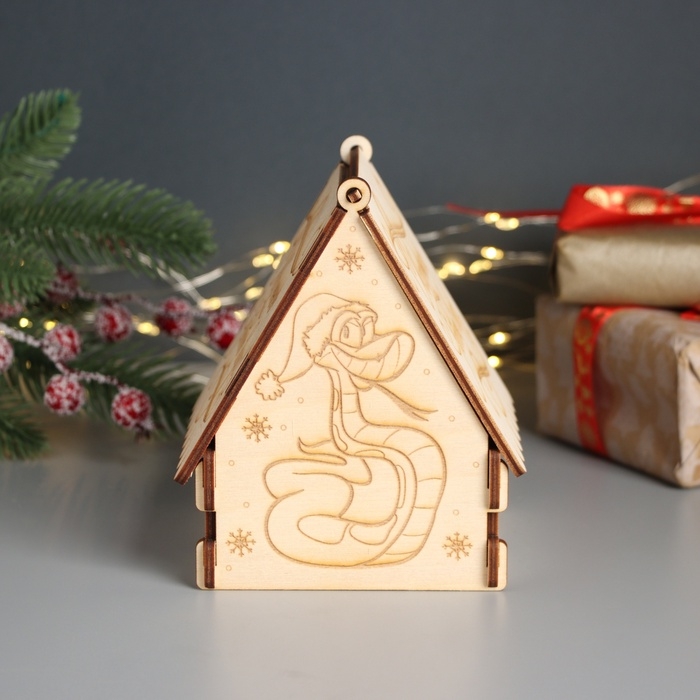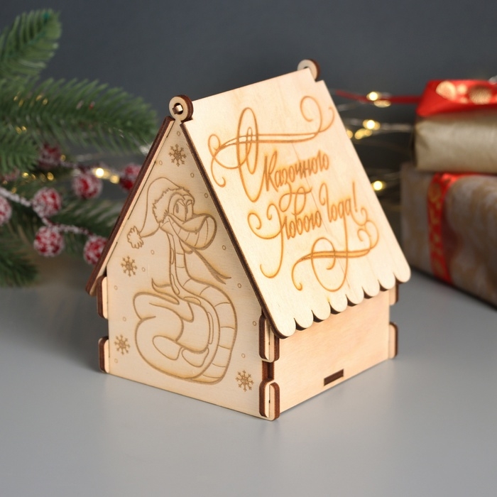 Новогодняя шкатулка-домик "Змея, сказочного НГ" 12х10х14 см
