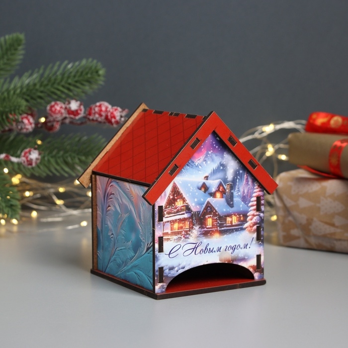 Новогодний чайный домик "С Новым годом" 10,5х9,5х12 см