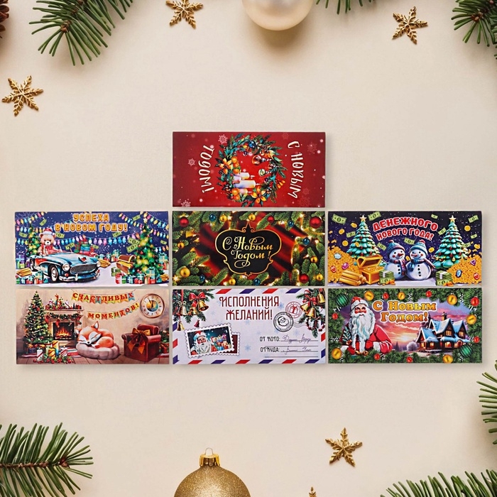Набор конвертов "С Новым Годом!" 16 х 8 см, 7 штук