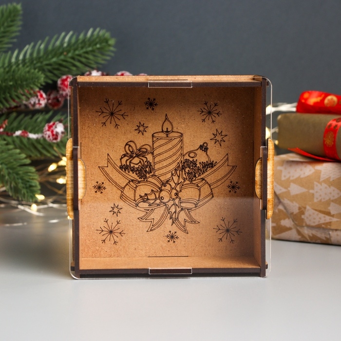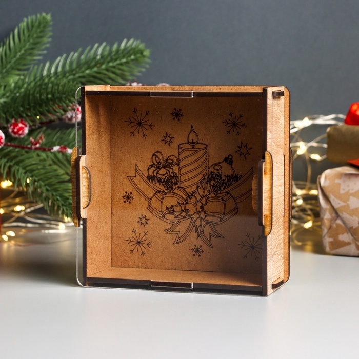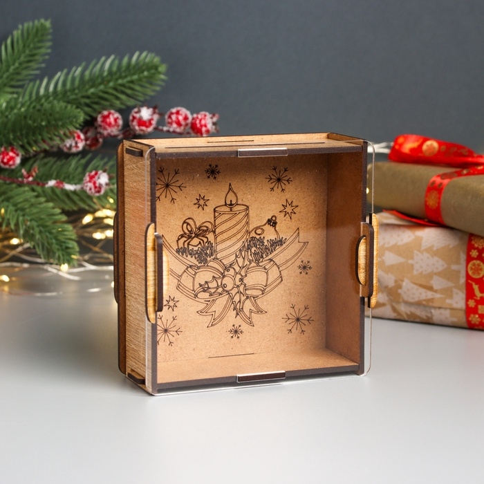 Новогодняя копилка с акрилом "Праздник" 12х12х4 см