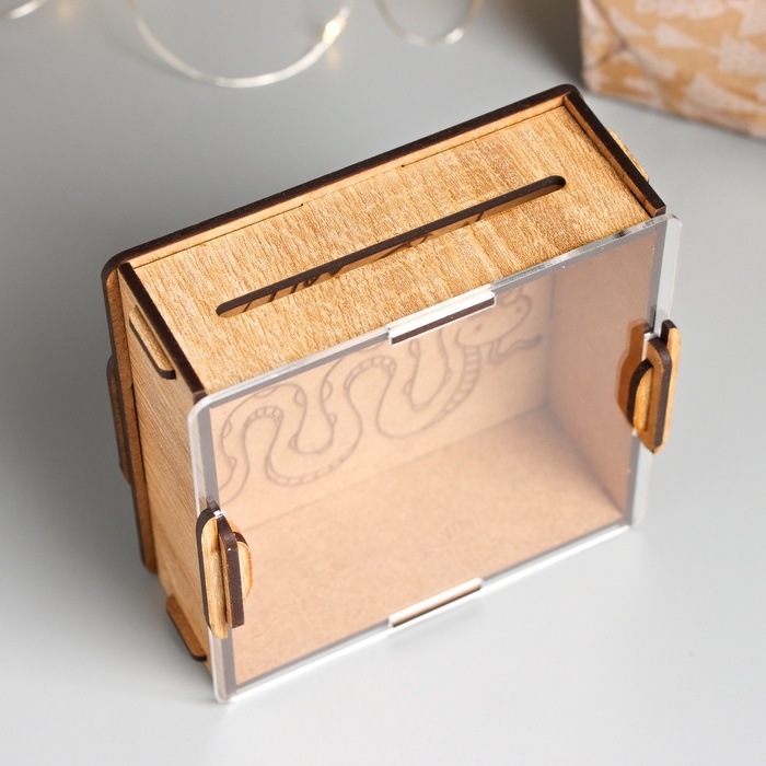 Новогодняя копилка с акрилом "Змея. С Новым годом" 12х12х4 см