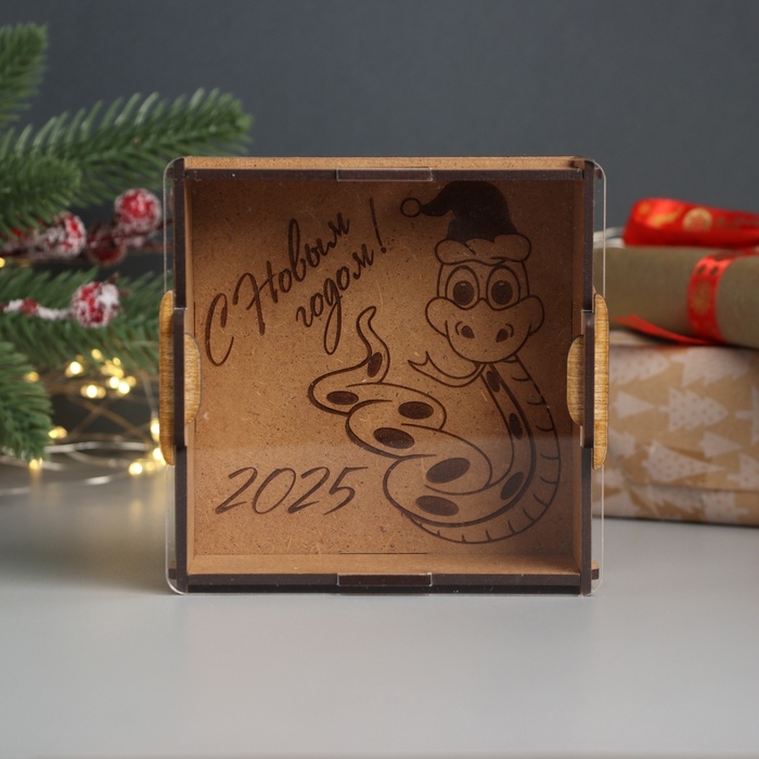 Новогодняя копилка с акрилом "Змея. Новый год" 12х12х4 см