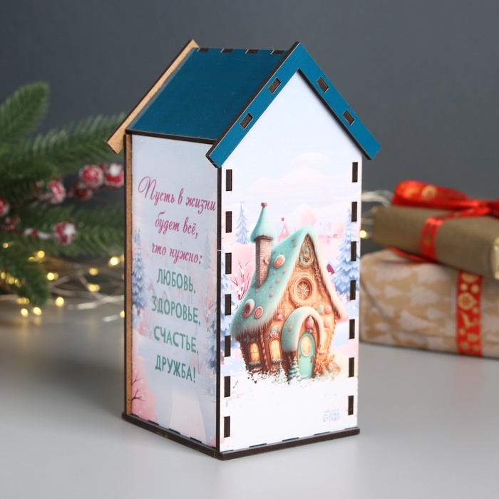 Новогодний чайный домик "С Наступившим" 20х10,5х10 см