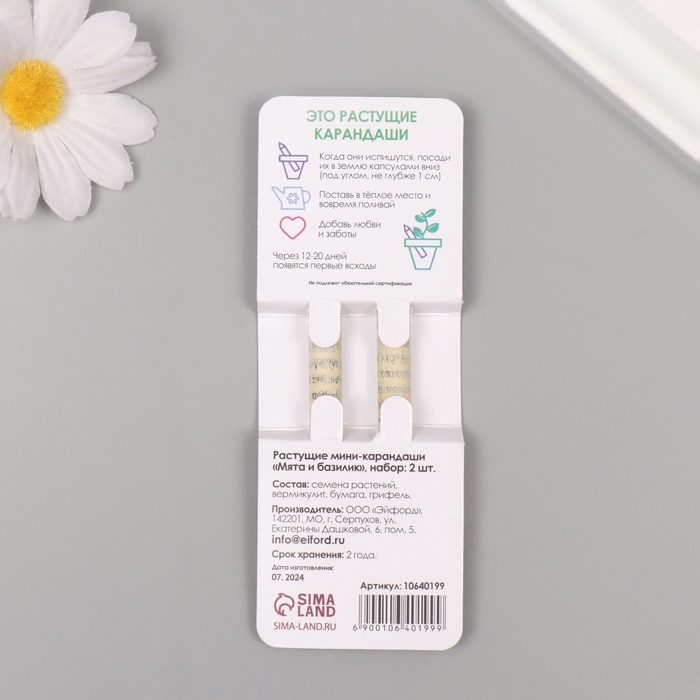 Растущие подарочные карандаши mini "Базилик + Мята" набор 2 шт.