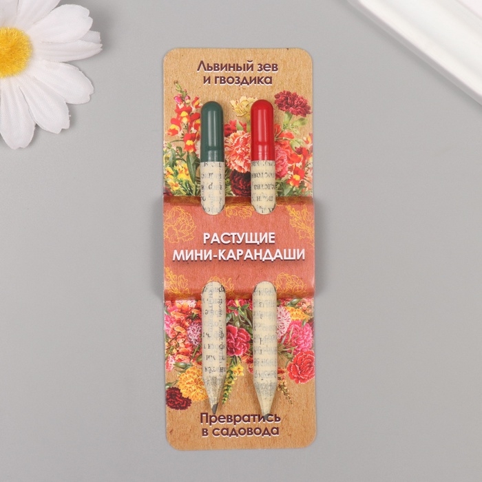 Растущие подарочные карандаши mini "Львиный зев + гвоздика" набор 2 шт.