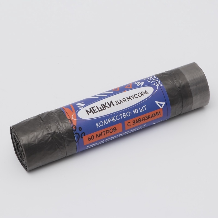 Мешки для мусора в рулоне "UpakLand" с завязками 60 л 16 мкм черные 10 шт