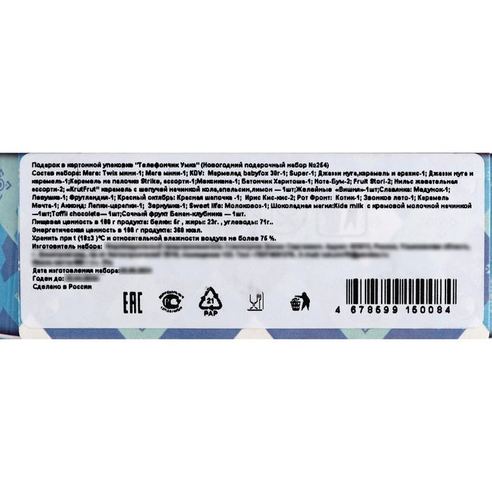 Подарите радость и магию в эти праздники с детским подарочным набором сладостей и конфет! Этот яркий и красочный набор станет альянсом счастья и сладких воспоминаний, идеально подходящим для Нового года и Рождества.