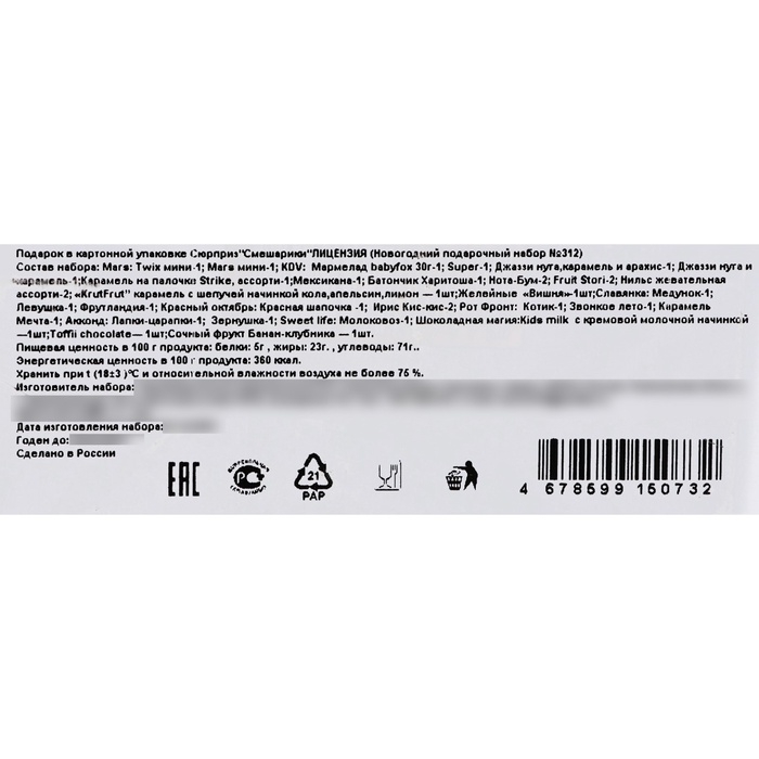 Внутри подарочной коробки вас ждет разнообразие конфет , которые порадуют сладкоежек. Яркая упаковка сразу привлекает внимание и создает атмосферу волшебства, а также, благодаря своему дизайну, идеально вписывается в новогоднюю атмосферу. Набор можно использовать как подарок под ёлку или как сладкое угощение на праздничном столе. Пусть этот набор станет воплощением волшебства праздника для вашего ребенка и создаст незабываемые воспоминания о зимних торжествах!