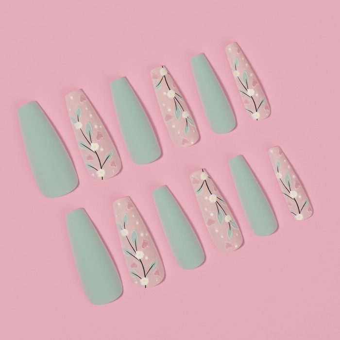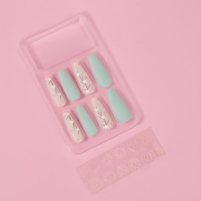 Накладные ногти «Свежесть», 12 шт, с клеевыми пластинами, форма балерина, цвет розовый/бирюзовый