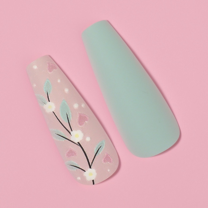 Накладные ногти «Цветочки», 12 шт, с клеевыми пластинами, форма балерина, разноцветные