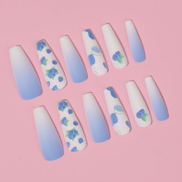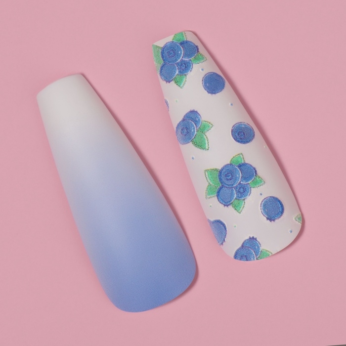 Накладные ногти «Черничка», 12 шт, с клеевыми пластинами, форма балерина, цвет белый/фиолетовый