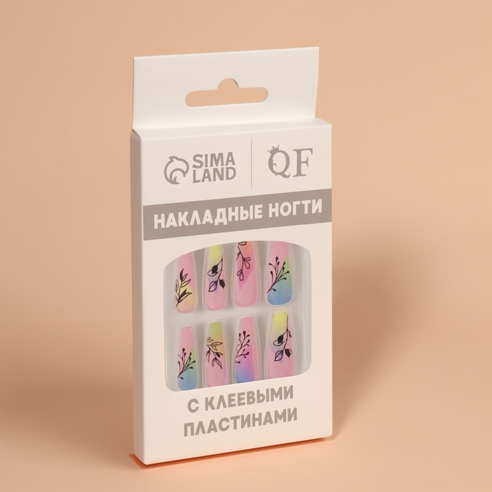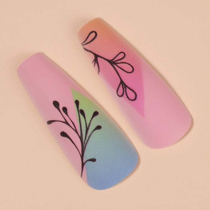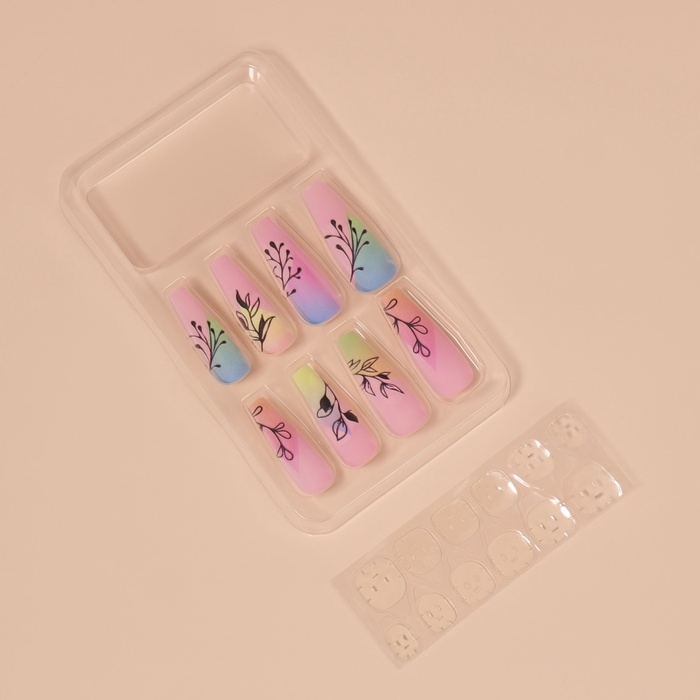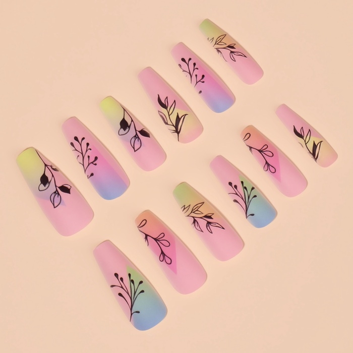 Накладные ногти «Веточки», 12 шт, с клеевыми пластинами, форма балерина, разноцветные