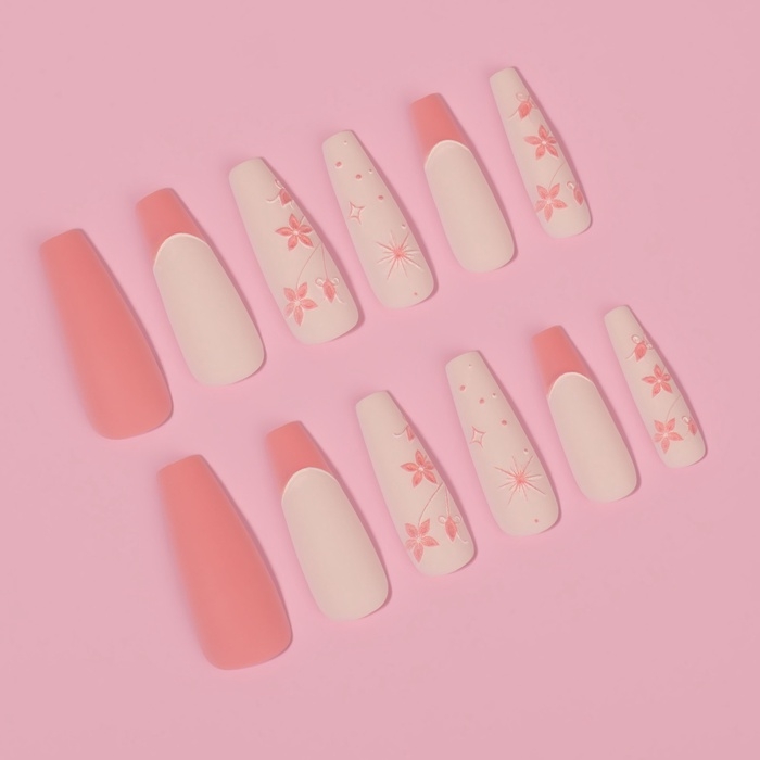 Накладные ногти «Цветочки», 12 шт, с клеевыми пластинами, форма балерина, разноцветные