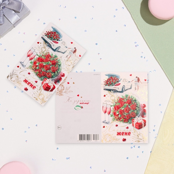 Открытка "Любимой жене!" конгрев, тиснение, красные розы, 12,5 х 19,4 см