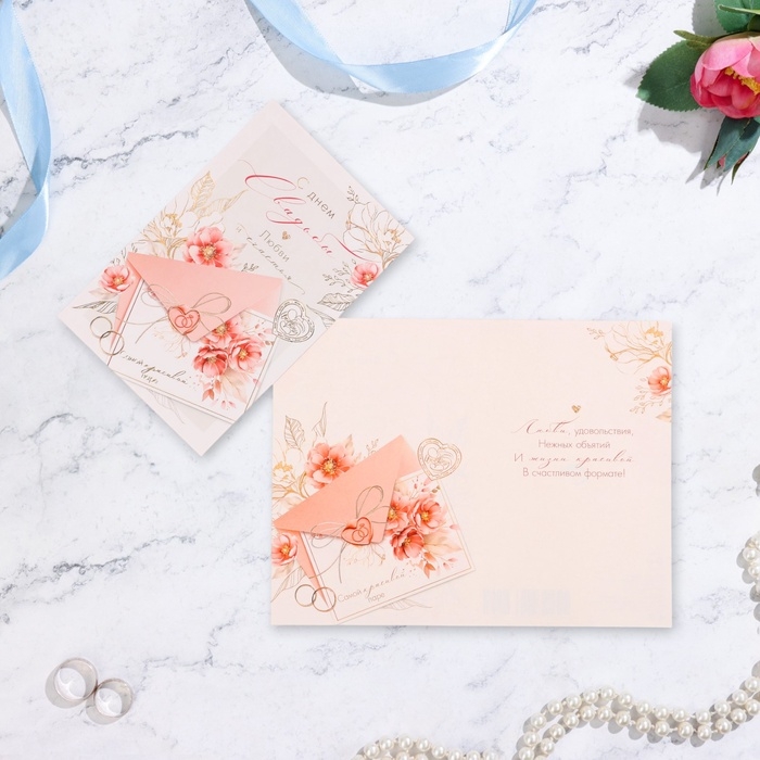 Открытка "С Днём Свадьбы!" конгрев, тиснение, конверт, 12,5 х 19,4 см