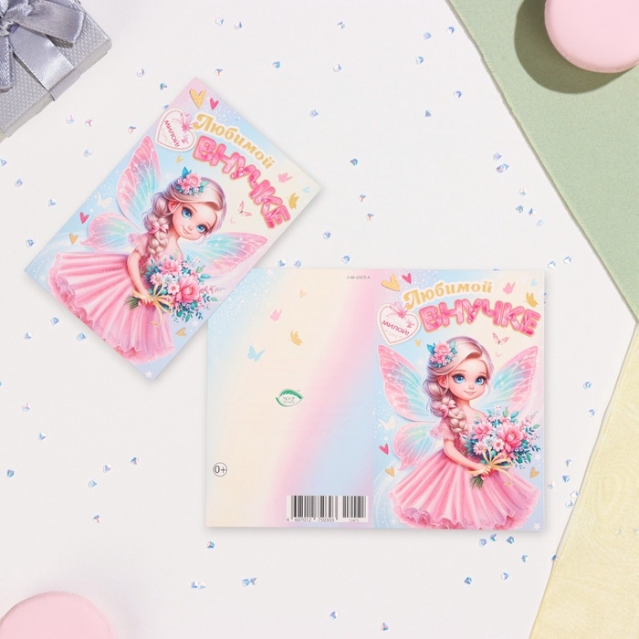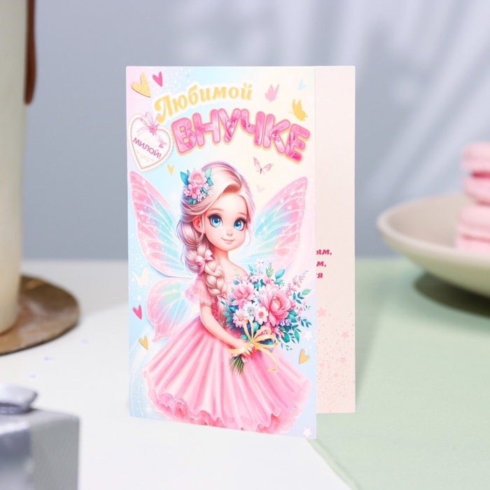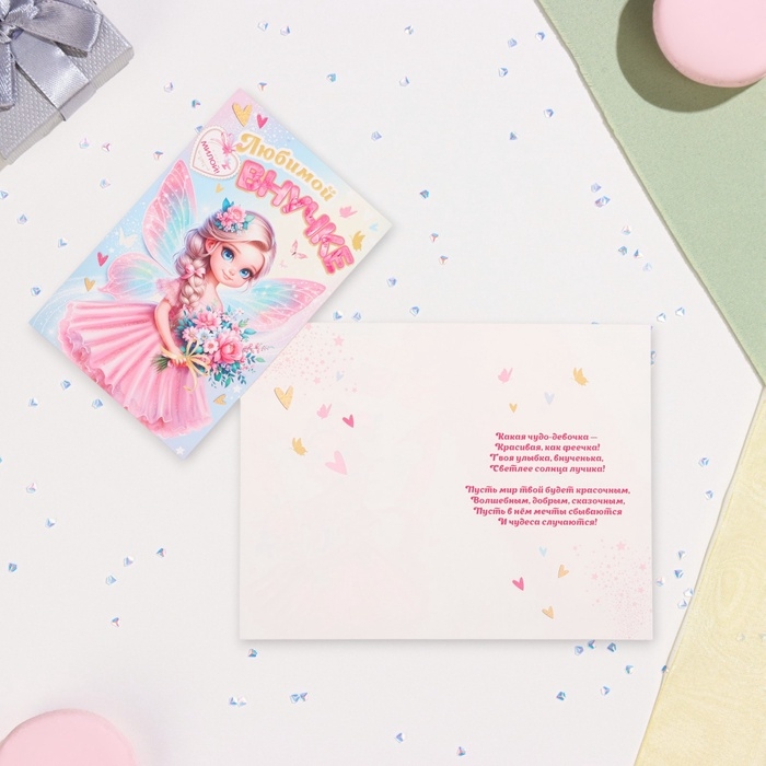 Открытка "Любимой внучке!" глиттер, конгрев, фея, 12,5 х 19,4 см