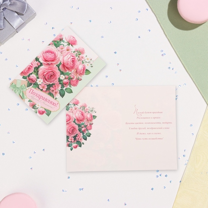Открытка "Поздравляю!" глиттер, конгрев, зелёный фон, 12,5 х 19,4 см